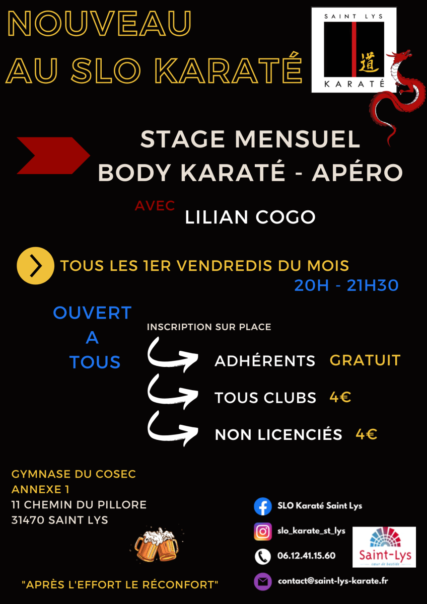 Stage Mensuel Body Karaté Tous les 1er vendredi du mois au SLO Karaté Saint-Lys